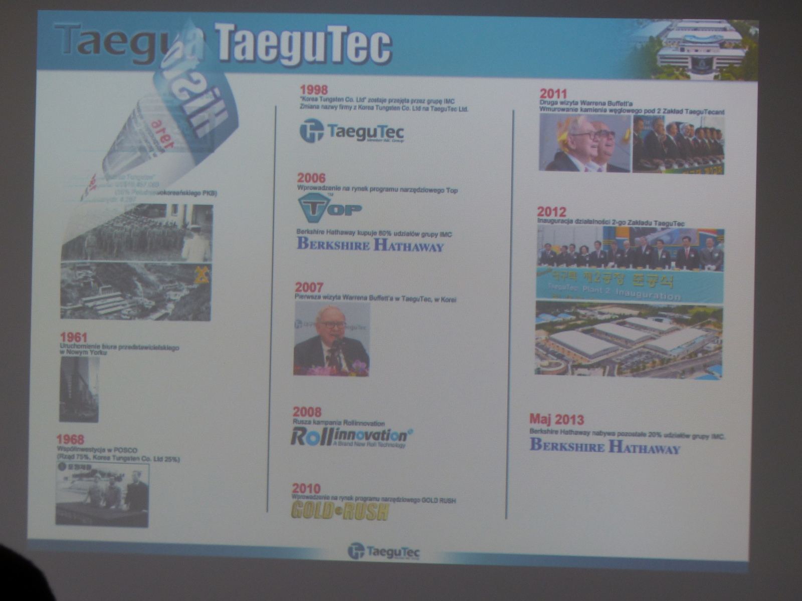 Uczniowie poznali historię firmy “SEGER Cutting Tools” oraz historię ich partnera handlowego. Jedną z najbardziej doświadczonych i największych firm w świecie, produkującą narzędzia skrawające “TaeguTec” z Korei Południowej.
