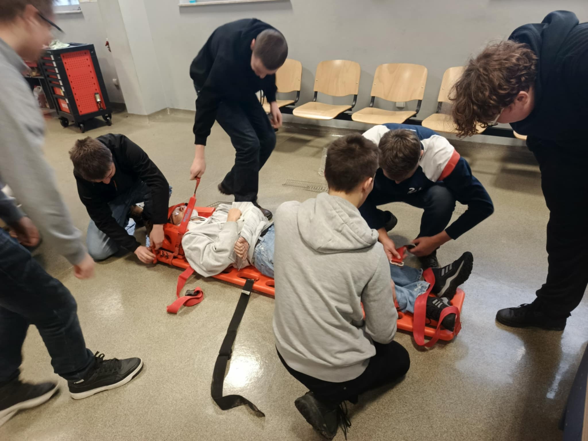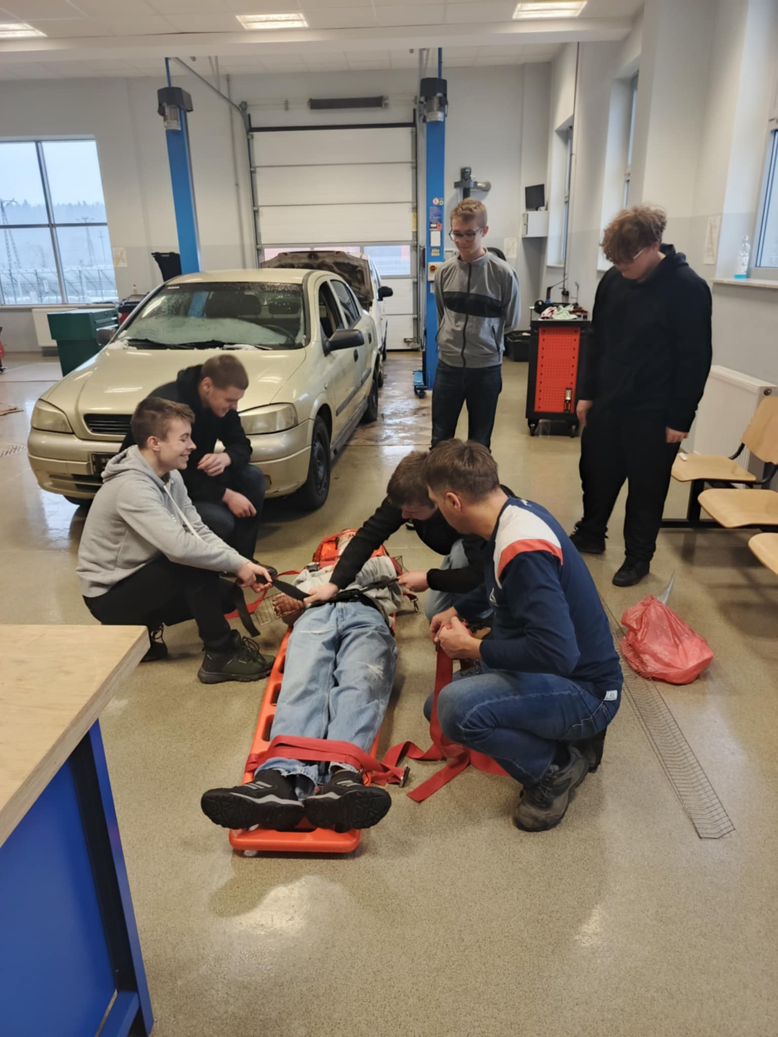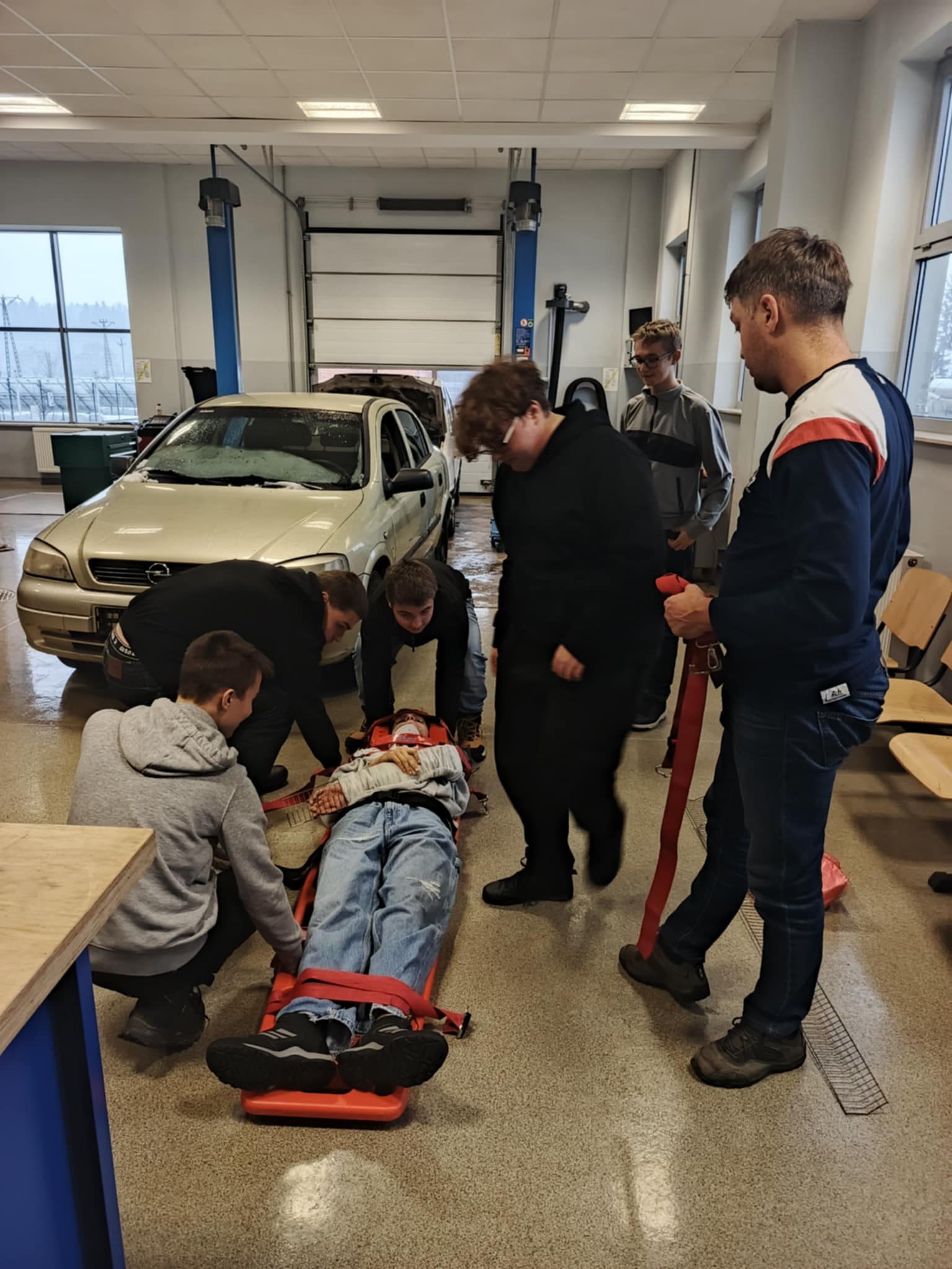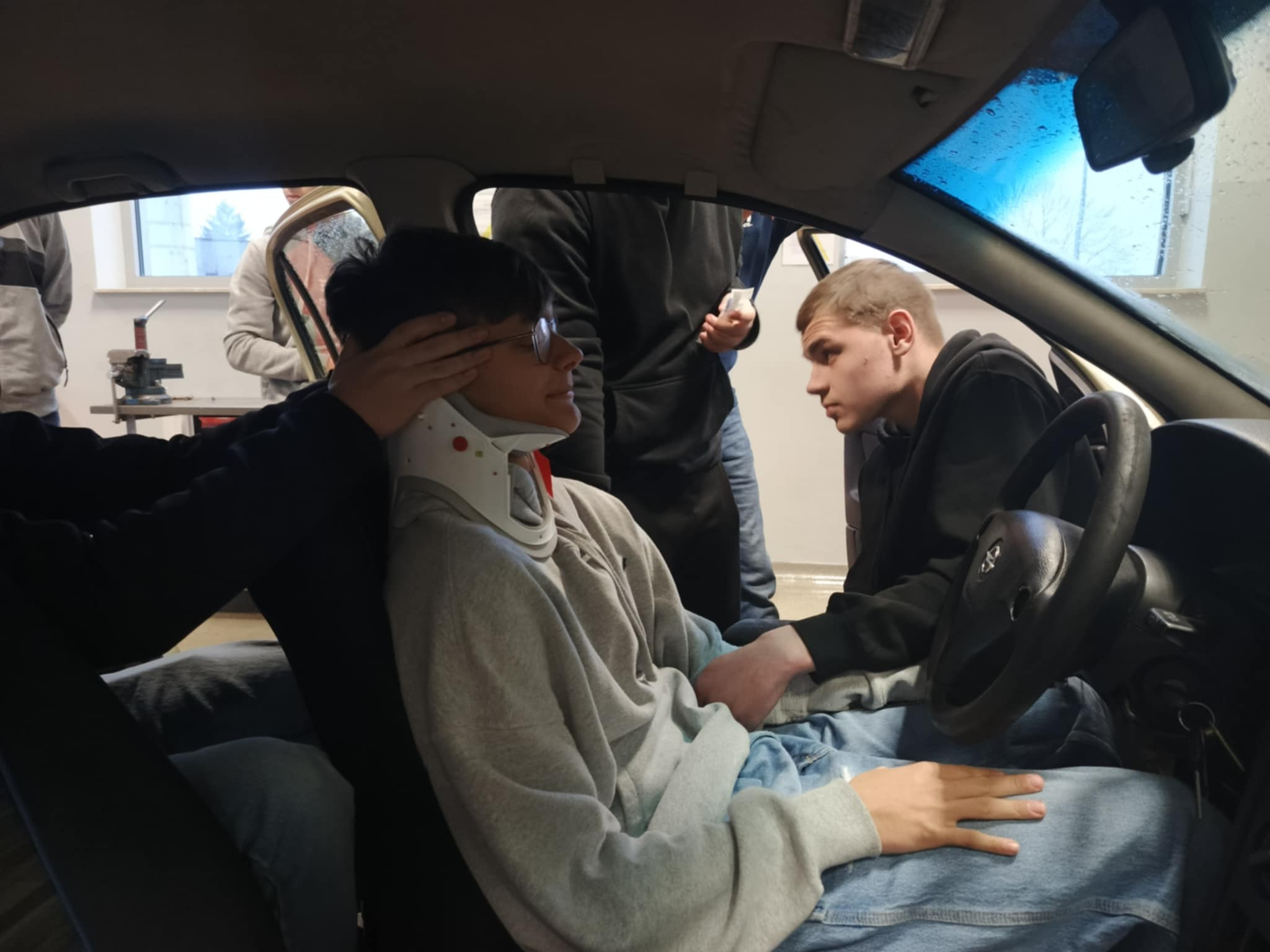 Jak co roku uczniowie, którzy przygotowują się do uzyskania prawa jazdy kategorii B w ramach zajęć szkolnych, brali udział w pokazie przygotowanym przez ratownika medycznego Pana Dawida Rusyna. Tematyką pokazu było wydobycie poszkodowanego z wraku samochodu oraz udzielenie pierwszej pomocy przed przybyciem służb ratunkowych.