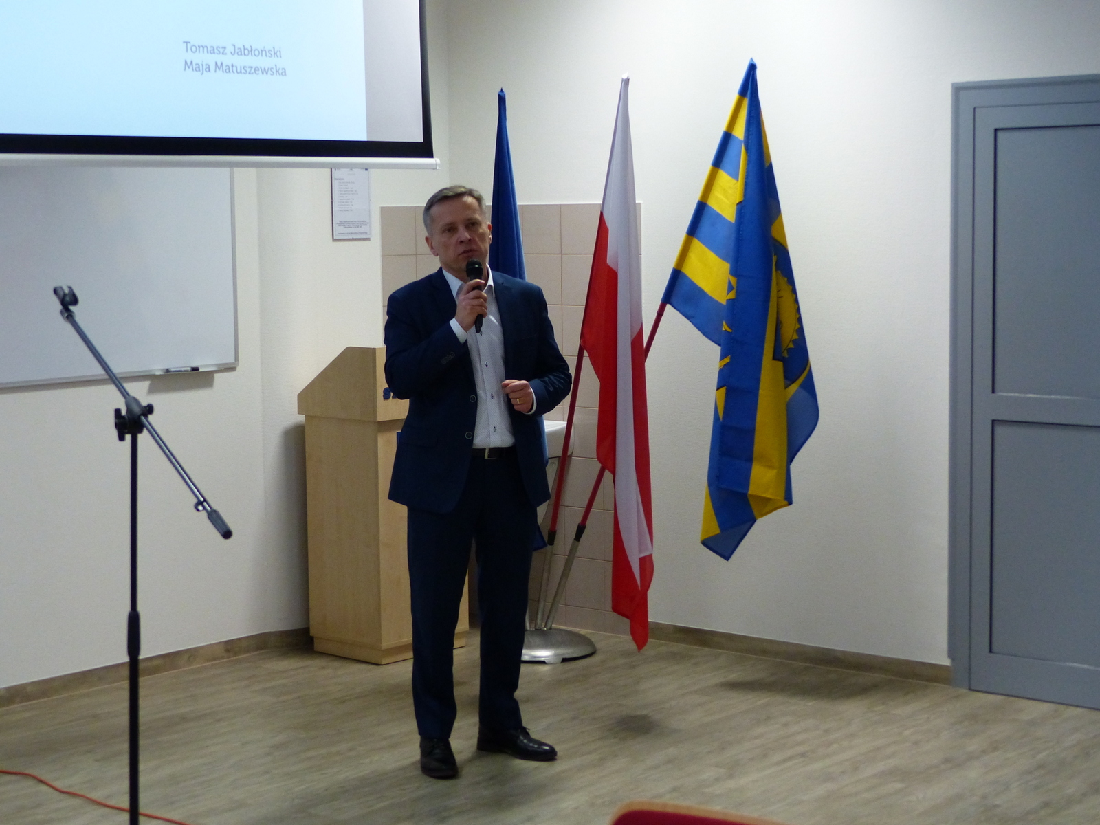 Konferencję otworzył Pan Jan Stodolak Wicestarosta Strzyżowski, który powitał zebranych, a następnie przedstawił działania samorządu powiatowego w zakresie dostosowania kształcenia zawodowego do potrzeb pracodawców i rynku pracy. Pan Wicestarosta zachęcał także przedsiębiorców do pozyskiwania wsparcia finansowego z różnych programów unijnych, mającego wpływ na rozwój ich firm.