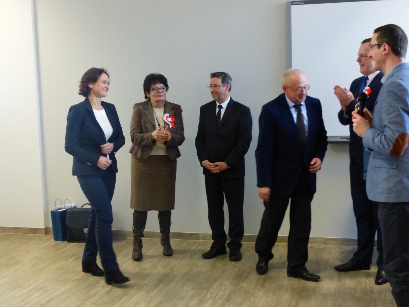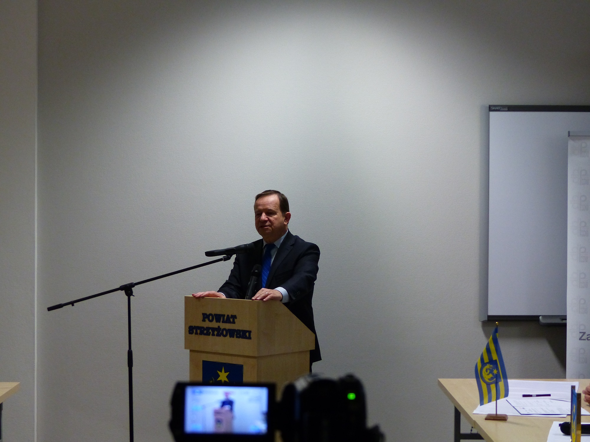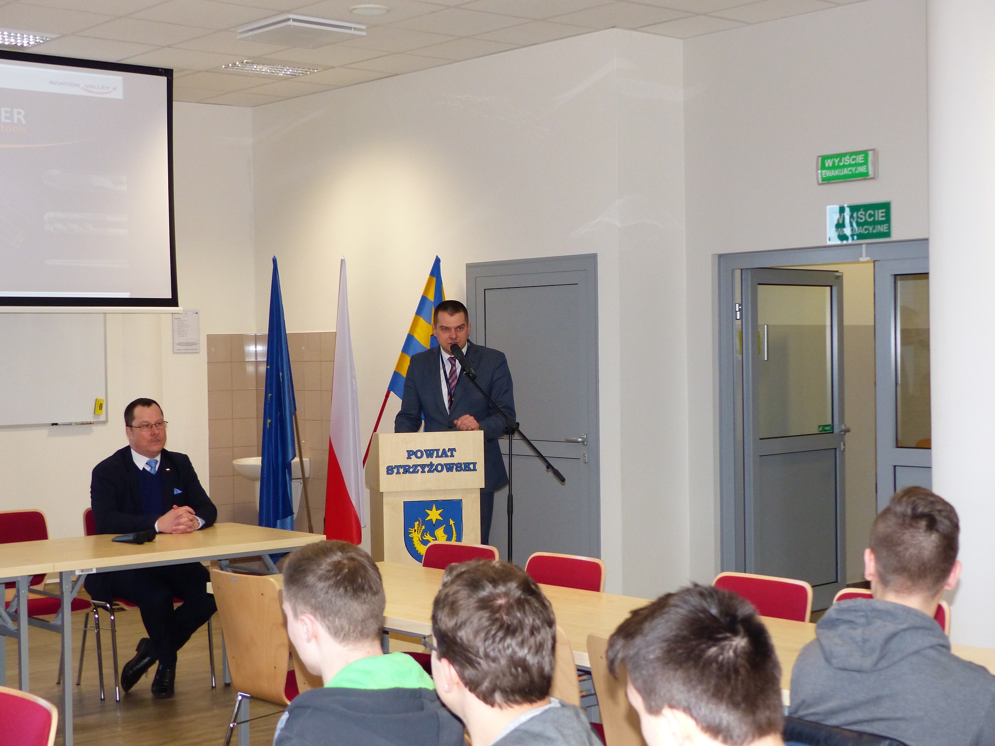 Przy podpisywaniu umowy obecni byli także: przedstawiciele organu prowadzącego placówkę: Pan Robert Godek Starosta Strzyżowski i Pani Maria Koś – Kierownik Wydziału Edukacji i Spraw Społecznych Starostwa Powiatowego w Strzyżowie, a także Dyrektor Zespołu Szkół Technicznych w Strzyżowie Pan Adam Witek, jak również uczniowie wraz opiekunami.