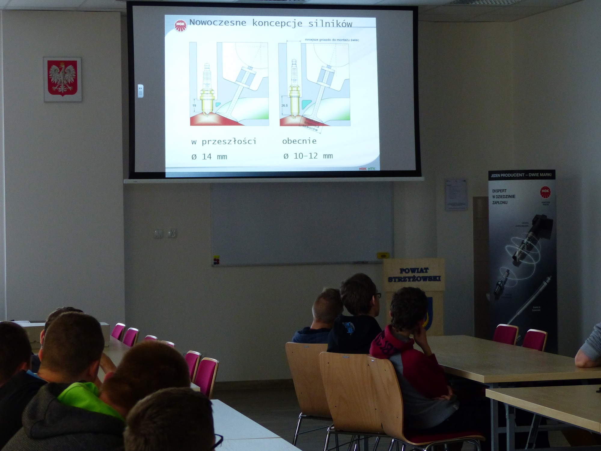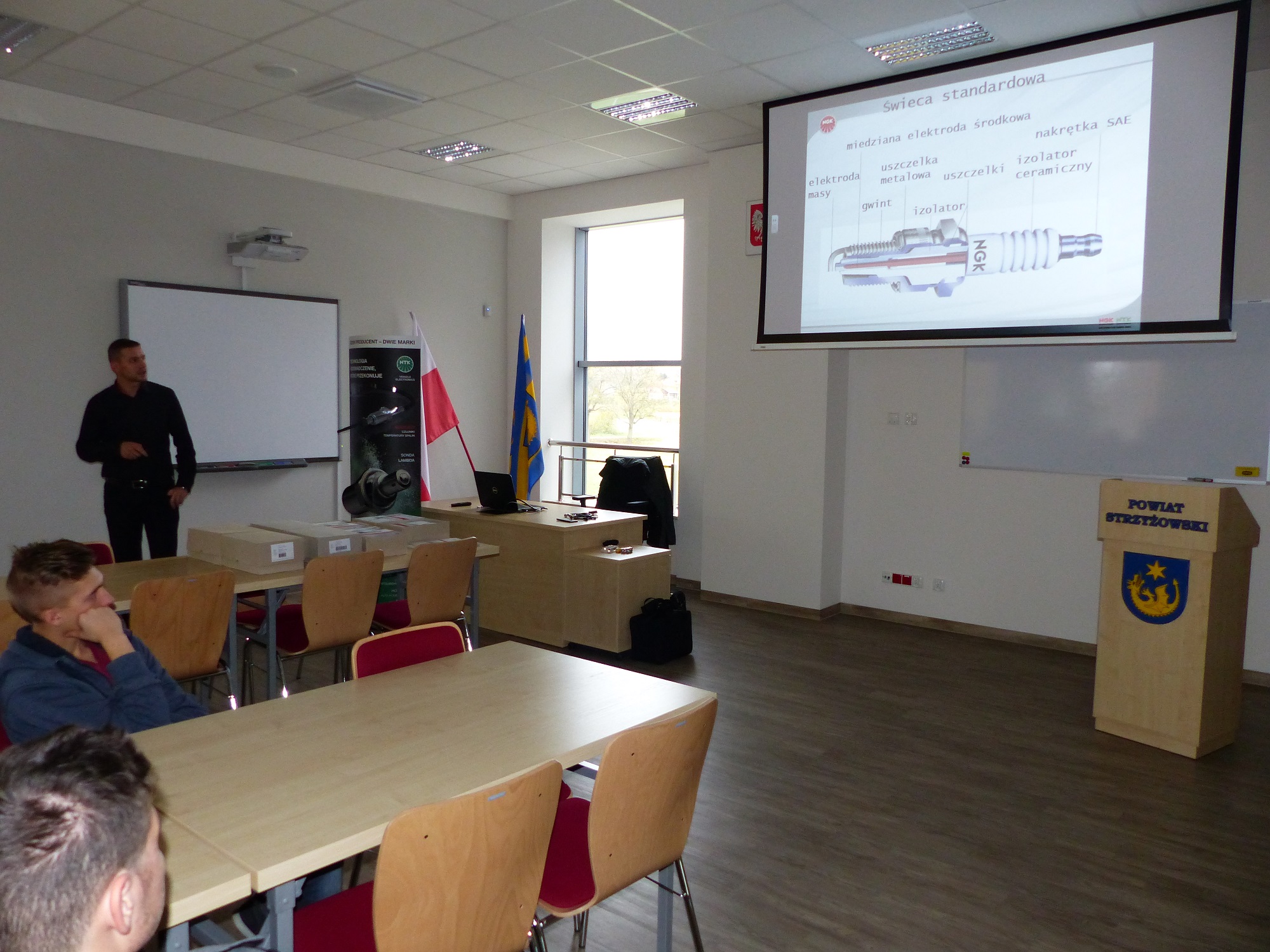W dniu 27.10.2016 w Centrum Kształcenia Praktycznego w Dobrzechowie odbyło się szkolenie przeprowadzone przez przedstawiciela firmy NGK Spark Plug Europe GmbH. W szkoleniu wzięli udział uczniowie klas technik pojazdów i mechanik pojazdów samochodowych. Uczniowie zapoznali się między innymi z budową i zasadą działania świec zapłonowych, świec żarowych, sondy lambda oraz przewodów zapłonowych. Uczniowie poznali również zasadę prawidłowego doboru do określonego modelu silnika w/w elementów według katalogów producenta.