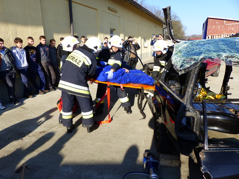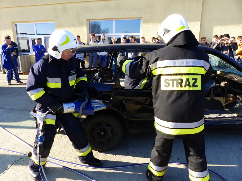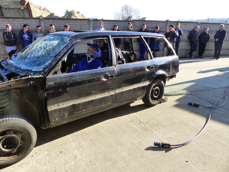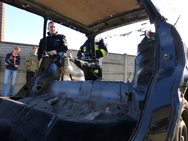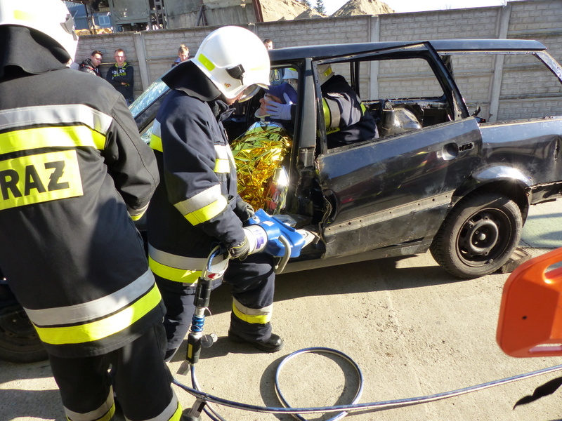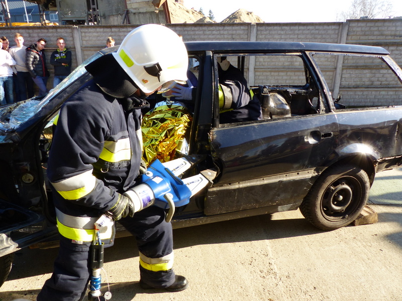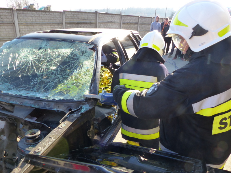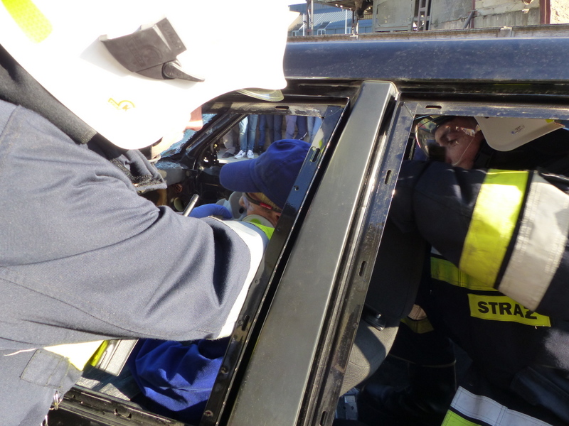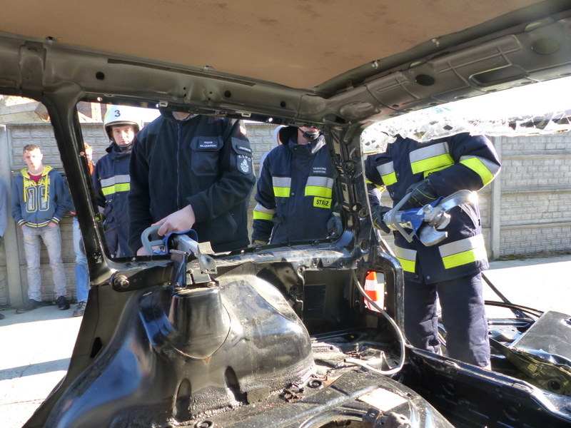 Na koniec uczniowie mieli okazję spróbować samodzielnej obsługi urządzeń służących do wydobywania poszkodowanego z pojazdu.