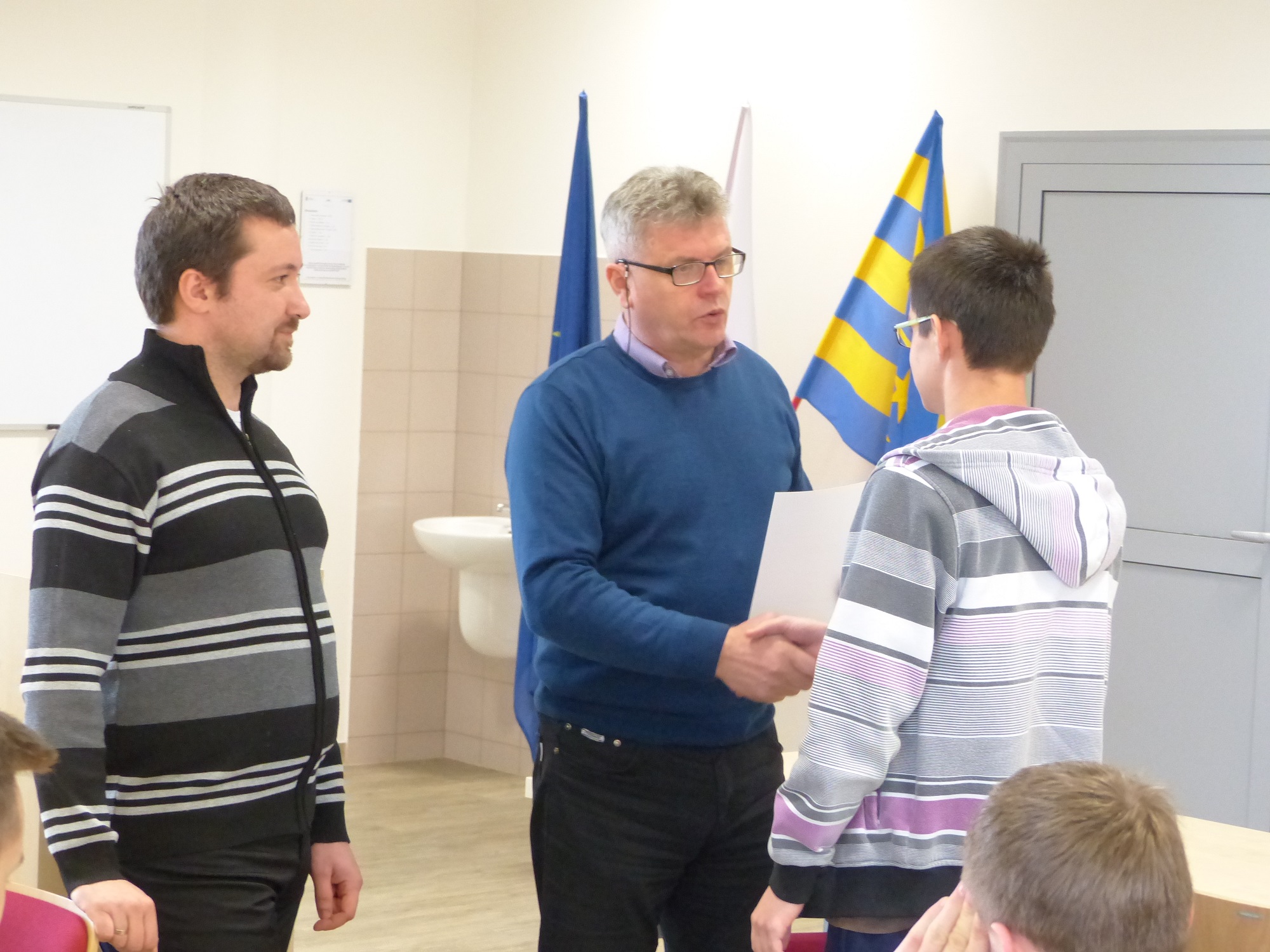 W dniu 28.02.2017 r w Centrum Kształcenia Praktycznego w Dobrzechowie odbyło się uroczyste ogłoszenie wyników szkolnego etapu Olimpiady Techniki Samochodowej. Dyrektor Centrum mgr inż. Jan Sopel podziękował wszystkim uczestnikom olimpiady za to, że wzięli w niej udział oraz zachęcał do przygotowywania się i dalszego uczestnictwa w tego typu konkursach. Wraz z organizatorem szkolnego etapu olimpiady mgr inż. Wojciechem Gadamskim wręczyli pamiątkowe dyplomy uznania trzem najlepszym uczniom. Byli to: