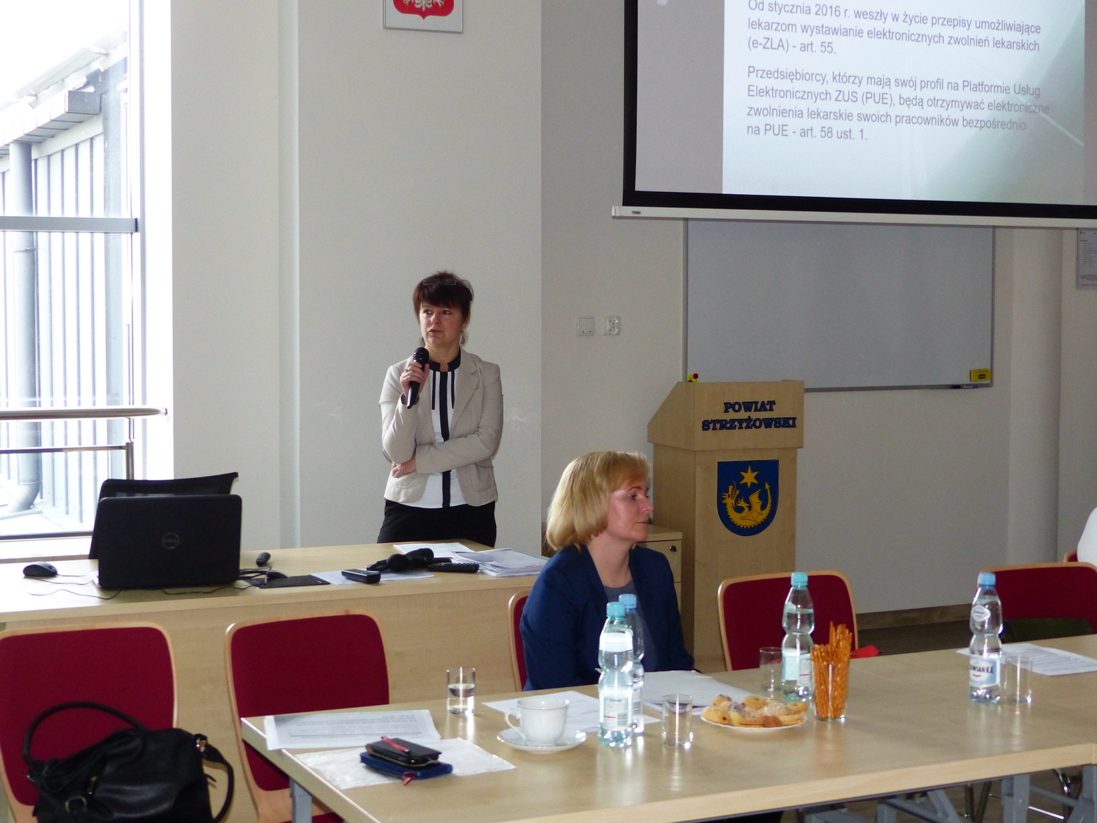 Szkolenie otworzył Starosta Strzyżowski Robert Godek, a w/w szkolenia prowadziła między innymi wicedyrektor Oddziału ZUS w Rzeszowie.