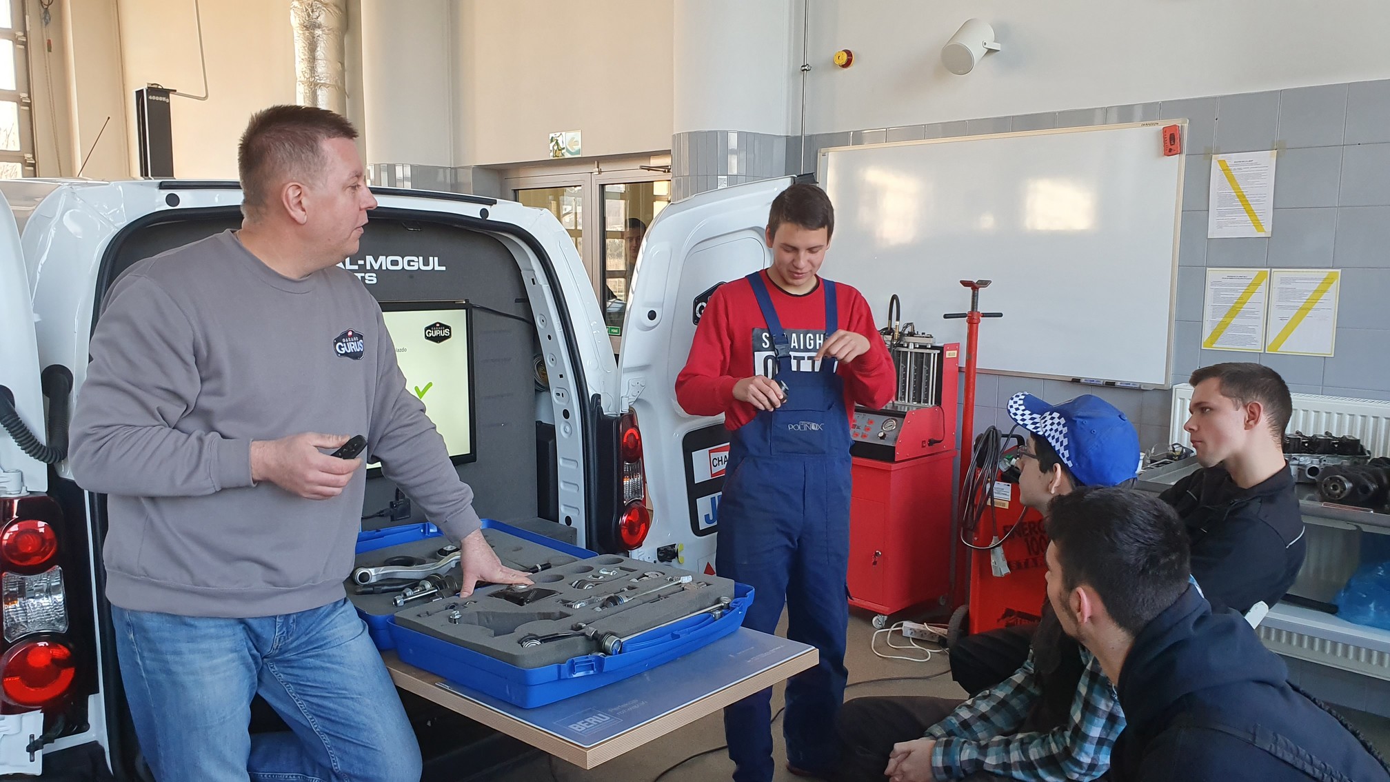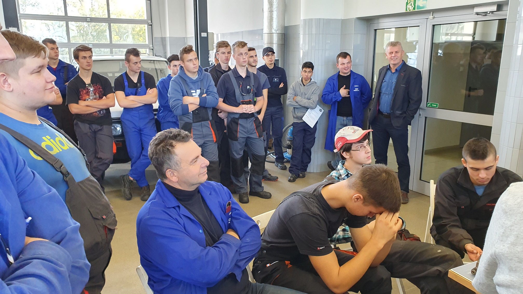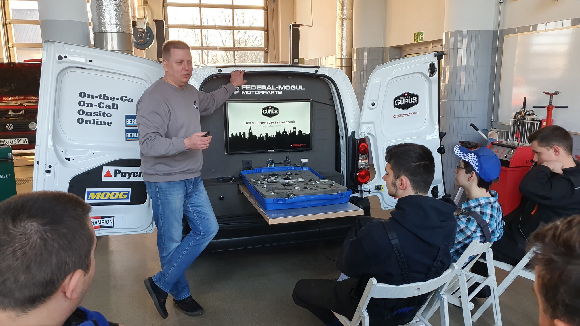5 grudnia 2019 roku Pan Jacek z firmy Federal-Mogul po raz kolejny odwiedził Centrum Kształcenia Zawodowego aby przeprowadzić techniczne szkolenie dla uczniów i nauczycieli w zawodach związanych z naprawa pojazdów samochodowych. Tym razem tematem szkolenia był układ kierowniczy i zawieszenia w pojazdach samochodowych. Prowadzący oprócz bardzo bogatej wiedzy, przekazał nam również częste błędy popełniane podczas montażu elementów tych układów, a także różnice w budowie, jakie stosują różni producenci podzespołów.