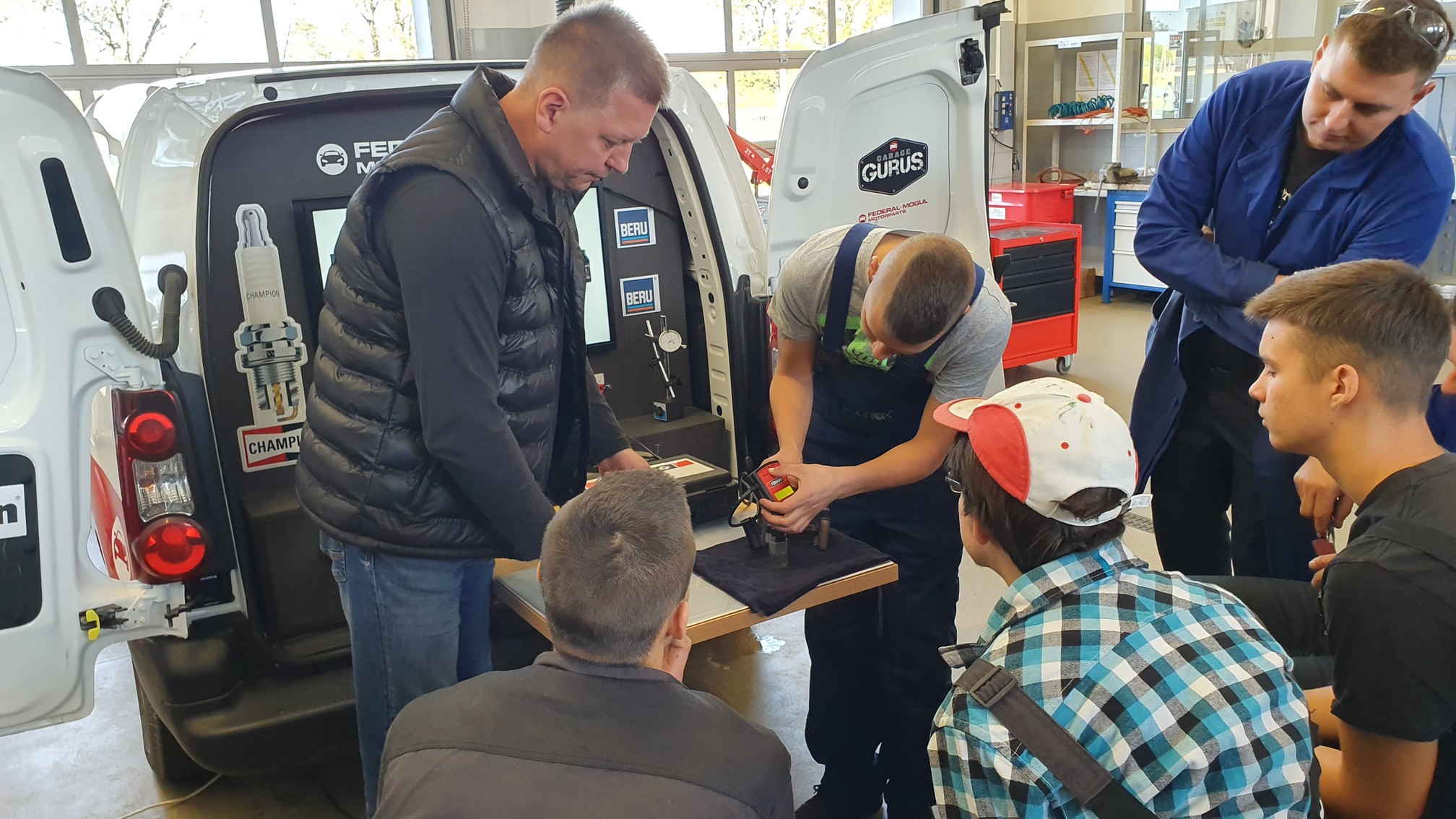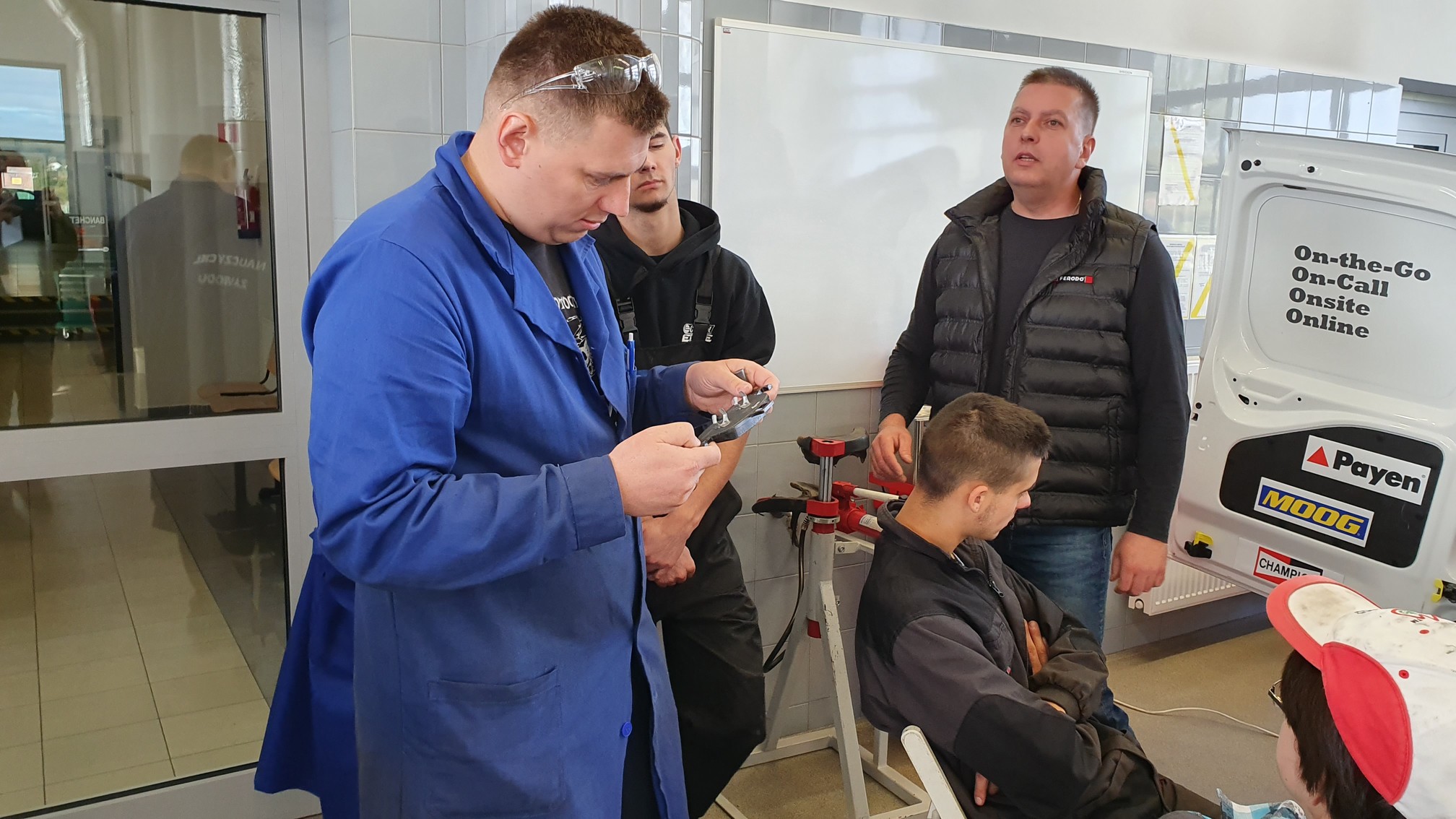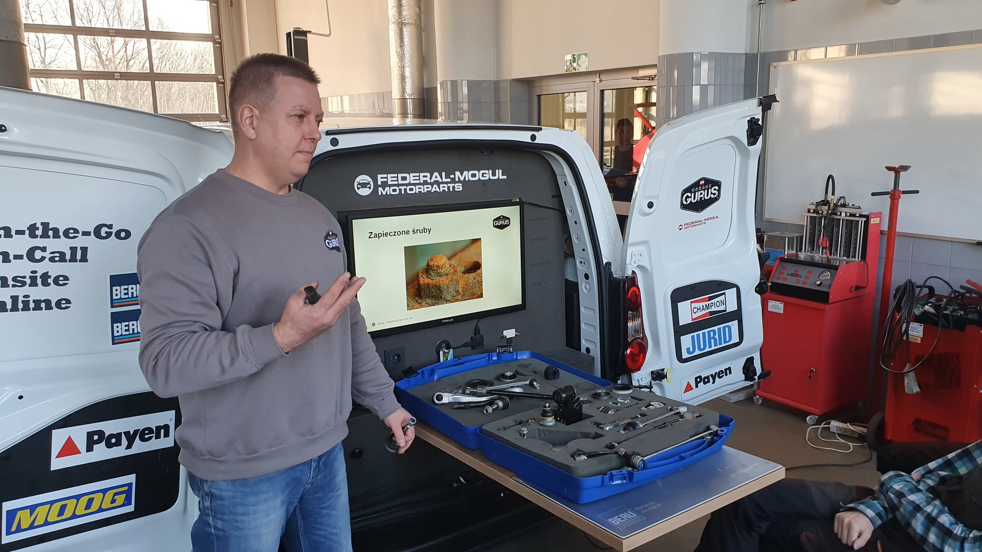 5 grudnia 2019 roku Pan Jacek z firmy Federal-Mogul po raz kolejny odwiedził Centrum Kształcenia Zawodowego aby przeprowadzić techniczne szkolenie dla uczniów i nauczycieli w zawodach związanych z naprawa pojazdów samochodowych. Tym razem tematem szkolenia był układ kierowniczy i zawieszenia w pojazdach samochodowych. Prowadzący oprócz bardzo bogatej wiedzy, przekazał nam również częste błędy popełniane podczas montażu elementów tych układów, a także różnice w budowie, jakie stosują różni producenci podzespołów.