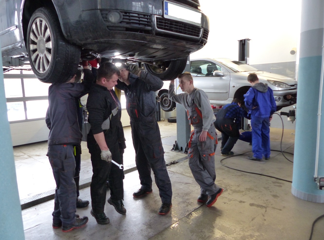 c) Uczniowie odbywają praktyki zawodowe w nowoczesnych zakładach naprawy pojazdów samochodowych oraz mają możliwość wyjazdu na płatną praktykę do zakładu mechanicznego w Niemczech.