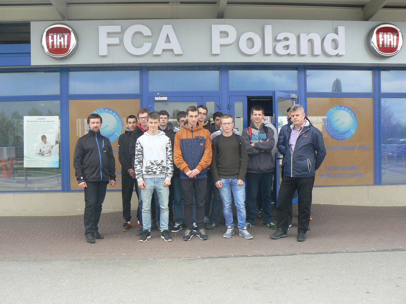 W dniu 25 kwietnia 2016 r. uczniowie odbywający zajęcia w Centrum z klas technik pojazdów samochodowych oraz mechanik pojazdów samochodowych wraz z dyrektorem Janem Sopel i Wojciechem Gadamskim wzięli udział w wycieczce do Fabryki samochodów osobowych firmy Fiat Chrysler Automobiles (FCA) Poland S.A. Fabryka w Tychach jest jedną z największych fabryk samochodów na Świecie. W drodze powrotnej zwiedziliśmy także Państwowe Muzeum Auschwitz-Birkenau w Oświęcimiu. Wycieczka dla uczniów była formą nagrody za dobre wyniki w nauce oraz wysoką frekwencję na zajęciach. W wycieczce uczestniczyło 30 uczniów oraz opiekunowie.