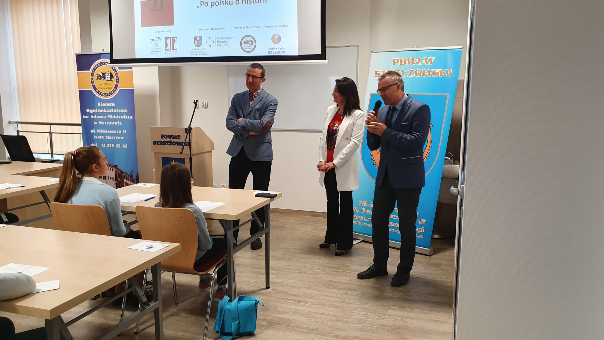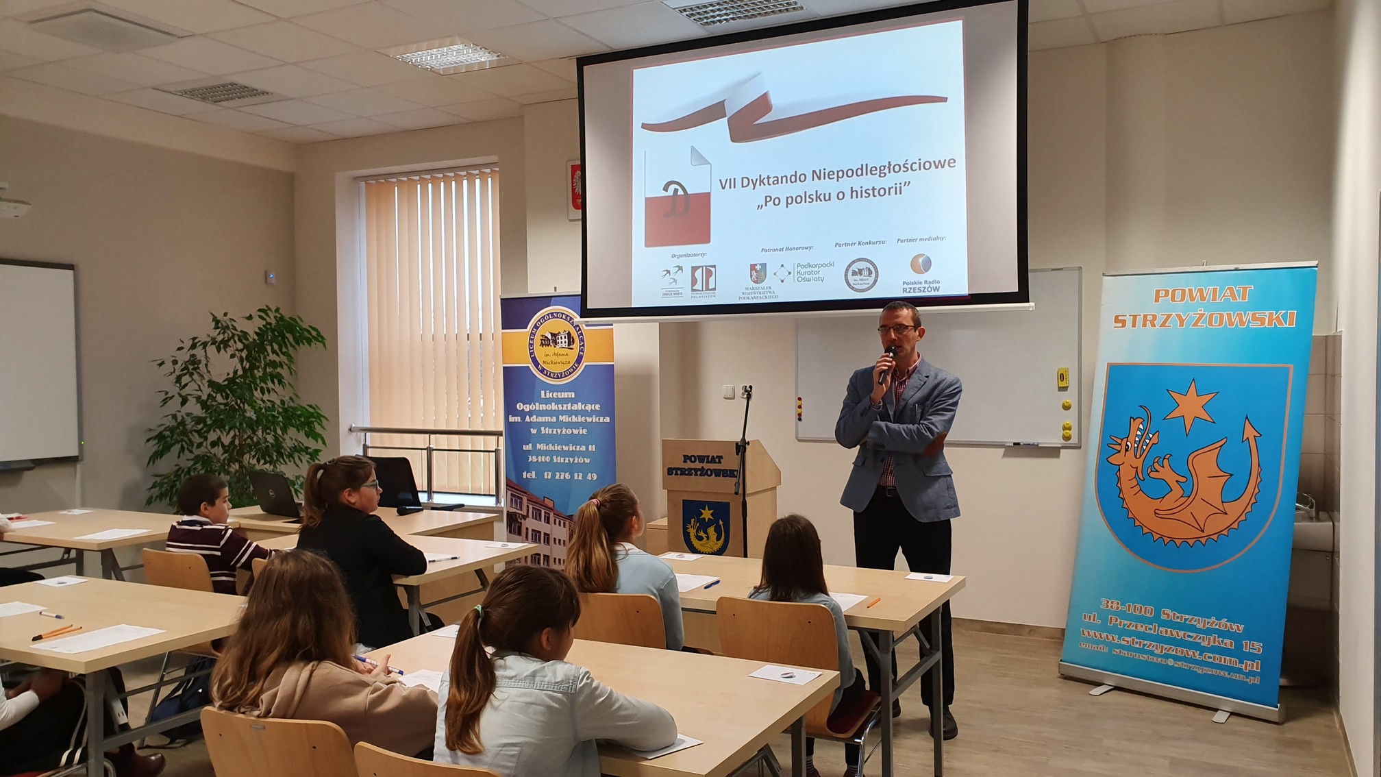 W dniu 28 października w Centrum Kształcenia Zawodowego w Dobrzechowie odbył się wojewódzki etap VII Dyktanda Niepodległościowego „Po polsku o historii”, którego organizatorem jest krakowska fundacja „Zawsze Warto” wraz ze Stowarzyszeniem Polonistów, a wojewódzkim koordynatorem – Liceum Ogólnokształcące im. Adama Mickiewicza w Strzyżowie. Strzyżowskie liceum już po raz drugi jest koordynatorem wojewódzkim tego przedsięwzięcia odbywającego się w siedmiu województwach: podkarpackim, małopolskim, śląskim, dolnośląskim, opolskim, lubelskim i świętokrzyskim.