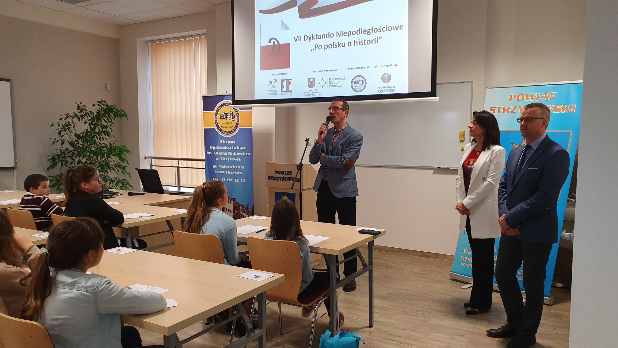 Zmagania konkursowe oficjalnie rozpoczął Wicestarosta Strzyżowski, który życzył piszącym samych pozytywnych wrażeń, a treść Dyktanda czytali: Urszula Mendelowska – szkolny koordynator Dyktanda Niepodległościowego w strzyżowskim liceum oraz Mirosław Czarnik – dyrektor LO, koordynator wojewódzki. Uroczyste podsumowanie tej inicjatywy służącej dbałości o polską mowę, w trakcie której odbędzie się także wręczenie nagród zwycięzcom, będzie mieć miejsce 22 listopada w Sali Kolumnowej Urzędu Wojewódzkiego w Rzeszowie.